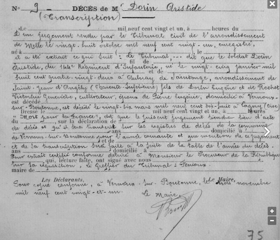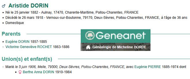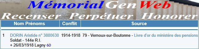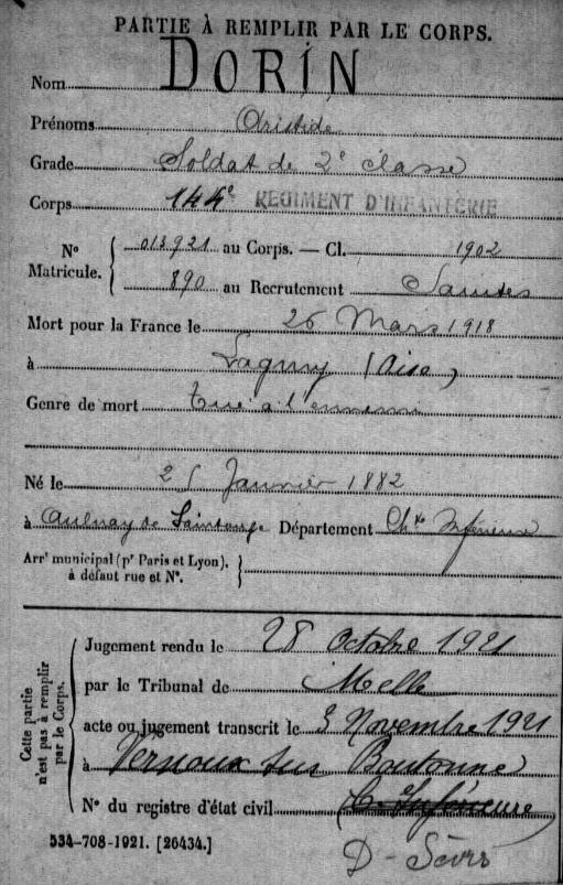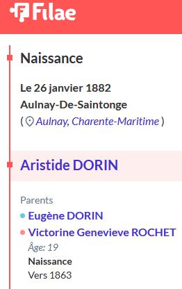 DORIN Arisitide n'était pas encore inscrit sur le monumnt aux Morts avant cette cérmonie mais il figurait sur le livre de pensions