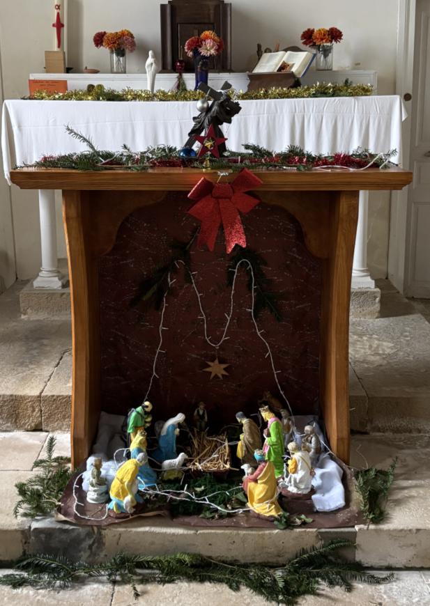 Mr Archaimbault Joël a confectionné et installé cet autel qui a été utilisé pour la 1ère fois le 14/05/2015 lors de la Messe de l’Ascension célébrée par le père NAUD Il remplace une simple table.