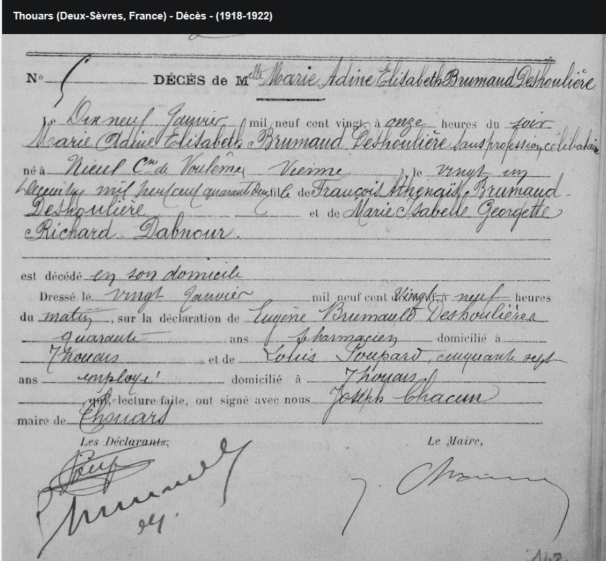 ME ELISABETH BRUMAULD DES HOULIERES DECEDEE A L'AGE DE 79 ANS |