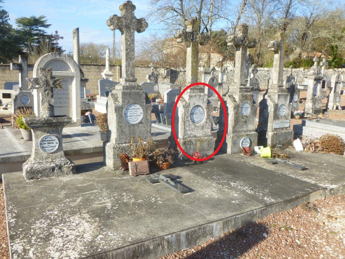 ICI REPOSE Louis-Marie-Frédéric BRUMAULD des Houlières décédé à Gençais (Vienne) le 19 Avril 1896 à l'âge de cinquante six ans |