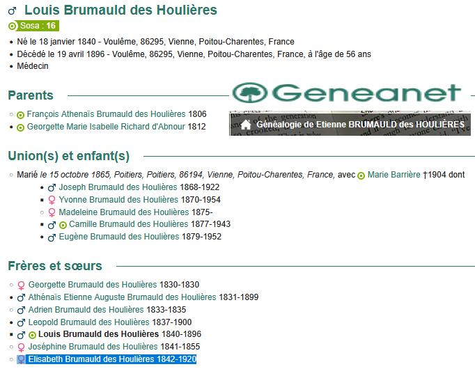 Elisabeth BRUMAULD DES HOULIERES (1842/1920) |